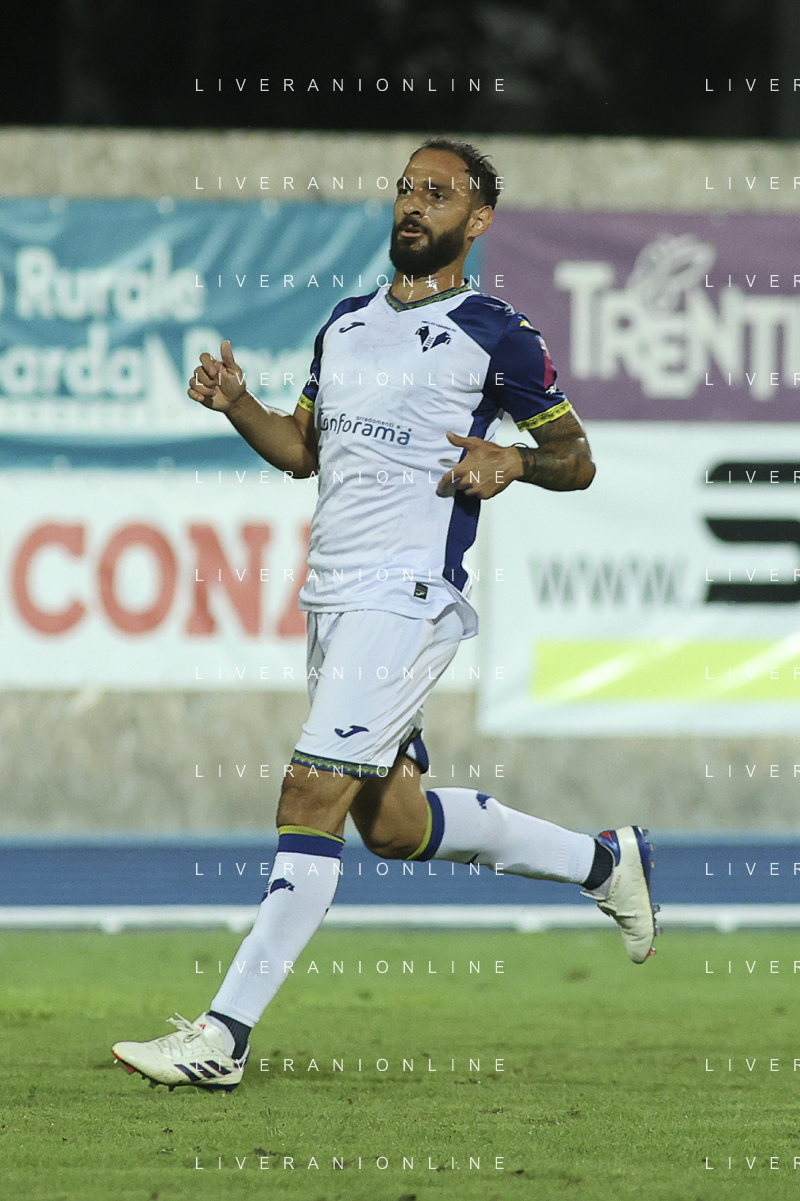 Dailon Livramento of Hellas Verona FC FC gestures during Hellas Verona FC vs Asteras Tripolis FC, 5° Test Match, at stadio "Quercia" in Rovereto (TN), on August 03, 2024. (Photo by Davide Casentini)/AGENZIA ALDO LIVERANI SAS