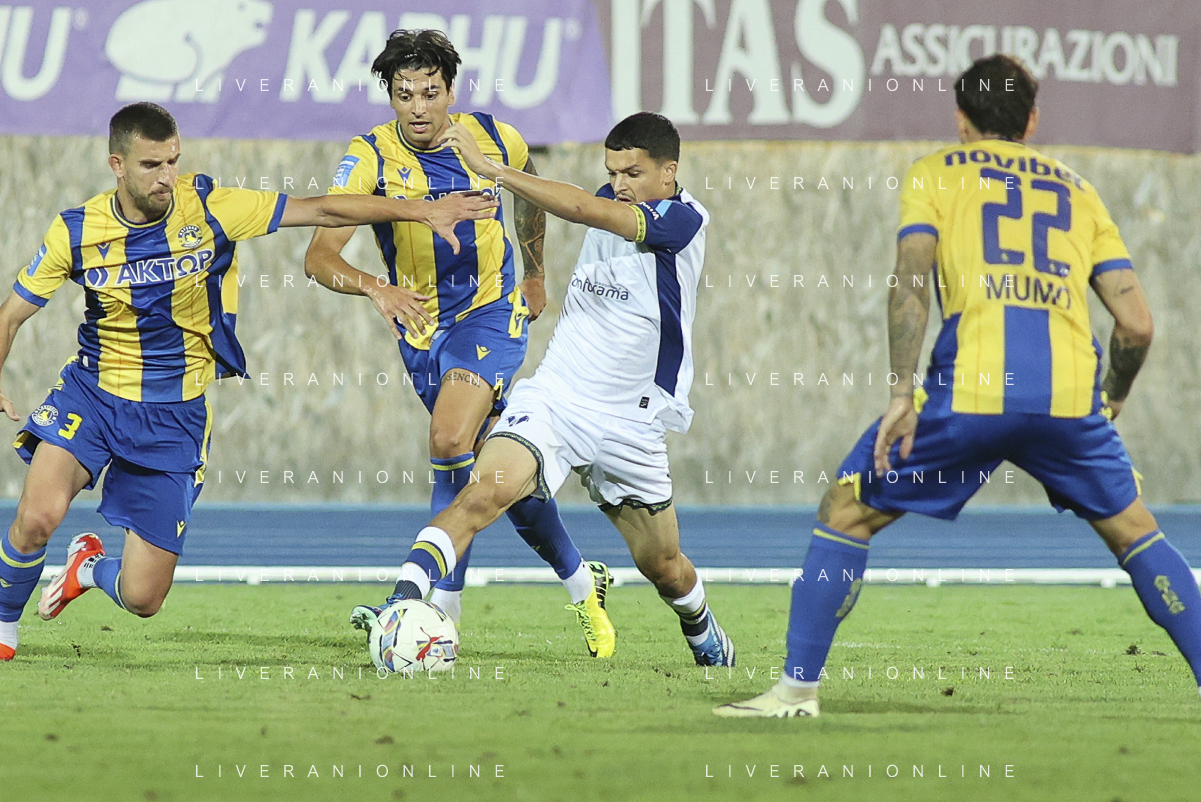 Abdou Harroui of Hellas Verona FC play the ball during Hellas Verona FC vs Asteras Tripolis FC, 5° Test Match, at stadio "Quercia" in Rovereto (TN), on August 03, 2024. (Photo by Davide Casentini)/AGENZIA ALDO LIVERANI SAS