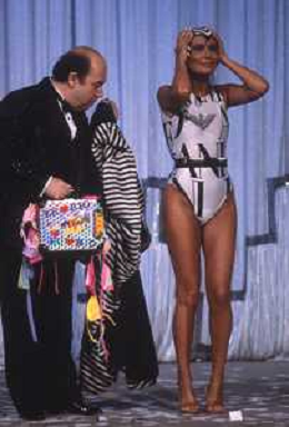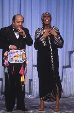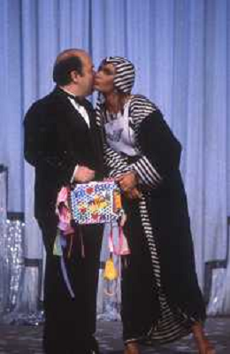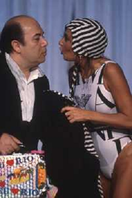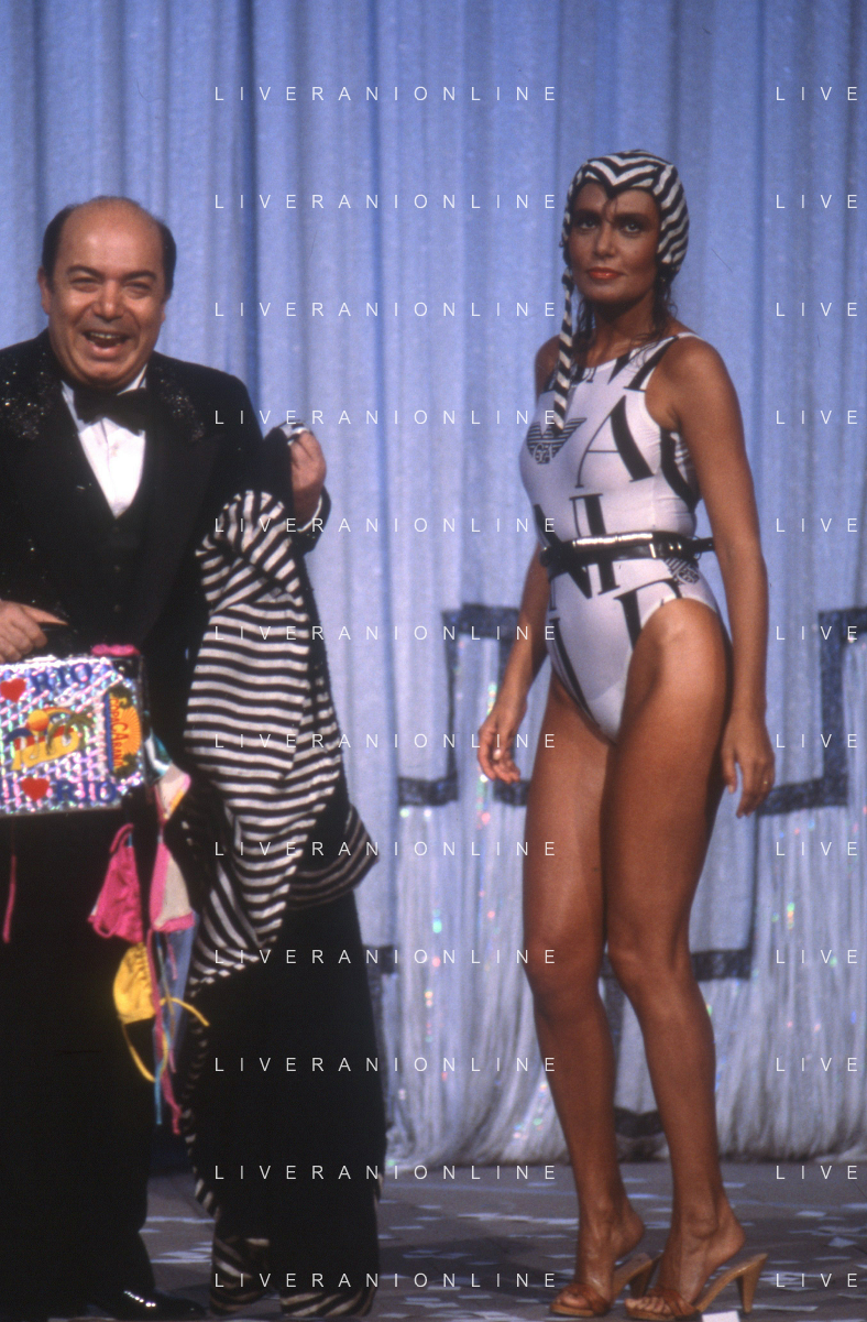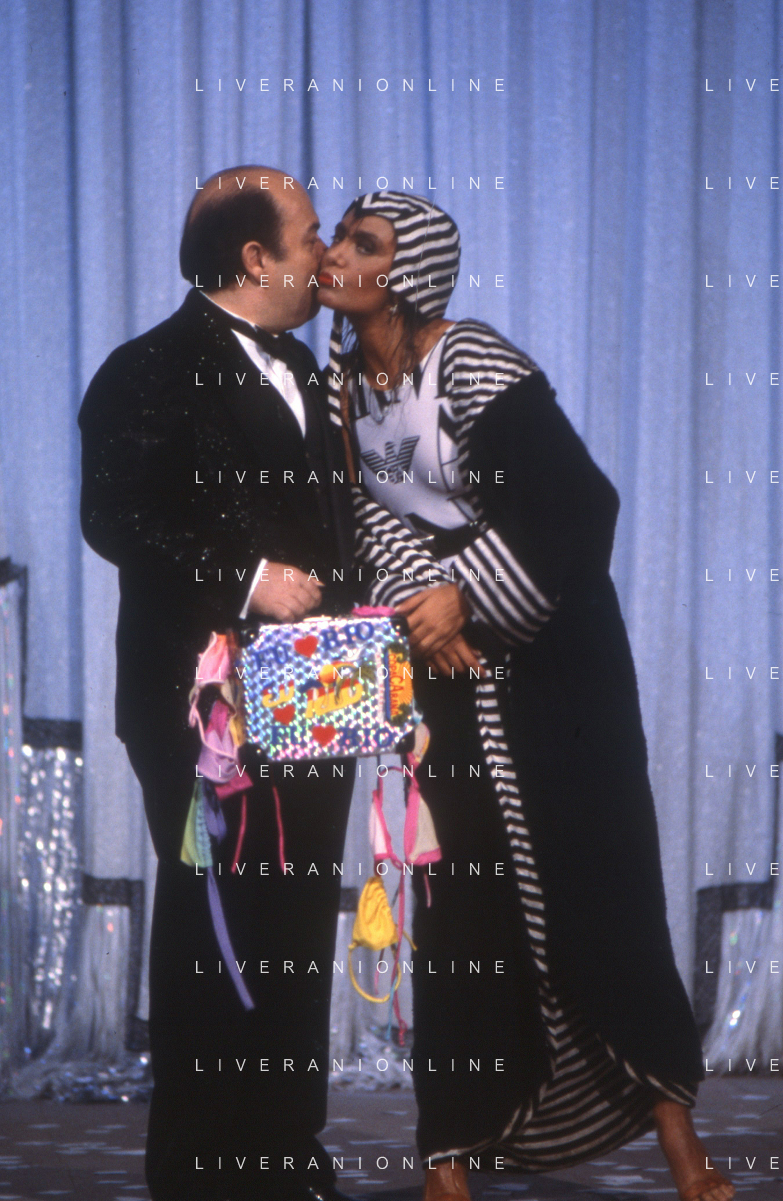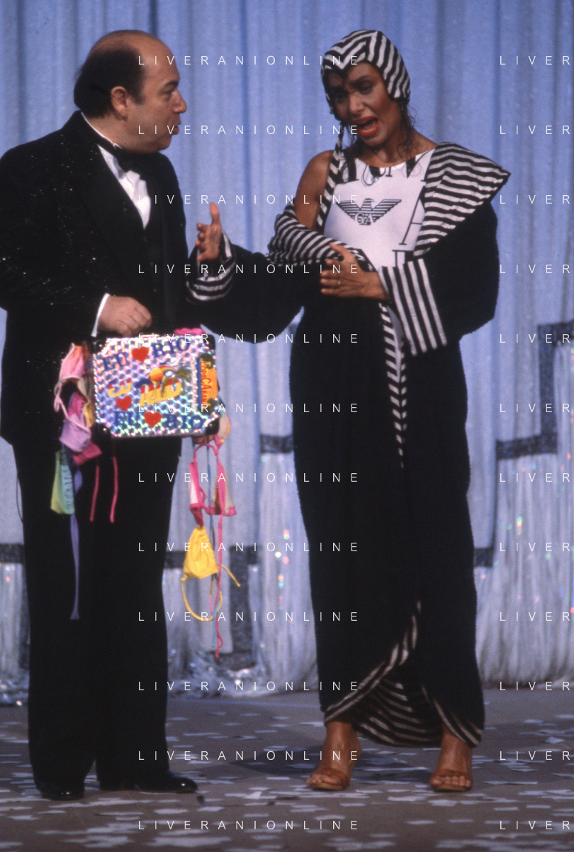 DIAP-RETROSPETTIVA LOREDANA BERTE' CANTANTE NELLA FOTO LOREDANA BERTE' CON LINO BANFI OSPITE DELLA TRASMISSIONE TELEVISIVA “RISATISSIMA“ NELL'ANNO 1985 AG ALDO LIVERANI SAS