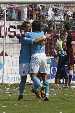 28 AGOSTO 2005 - ACIREALE-CAMPIONATO DI SERIE C ACIREALE-NAPOLI NELLA FOTO ESULTANZA NAPOLI EMANUELE CALAIO' FOTO MOSCA- AG LIVERANI