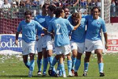 28 AGOSTO 2005 -CAMPIONATO DI SERIE C ACIREALE-NAPOLI NELLA FOTO ESULTANZA GIOCATORI NAPOLI A FINE GARA FOTO MOSCA- AG LIVERANI