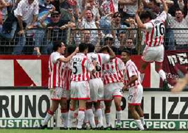06-05-2001 VICENZA-CAMPIONATO DI CALCIO SERIE A VICENZA-REGGINA 2-1 NELLA FOTO ABBRACCI GIOCATORI VECENZA DOPO IL GOAL AG ALDO LIVERANI SAS
