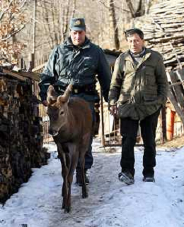vezza d'oglio (bs) 12/01/2006 il cerbiatto di nome Bruno salvato dal cacciatore Fausto Gregorini che lo ha medicato e svezzato foto filippo venezia-ag.aldo liverani sas