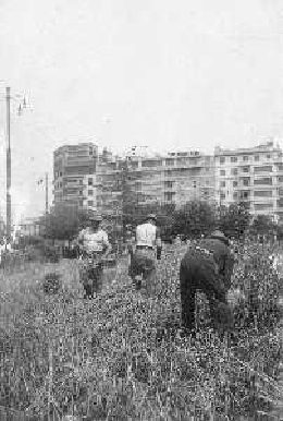ST-ARCHIVIO ARGO PERIODO FASCISMO LOMBARDIA E MILANO NELLA FOTO LA MIETITURA DEL GRANO NELLE AIUOLE DEL COMUNE DI MILANO FOTO ARGO-PROV ARCH CONTROLUCE-AG ALDO LIVERANI SAS
