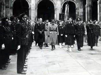 ST-ARCHIVIO ARGO PERIODO FASCISMO LOMBARDIA E MILANO NELLA FOTO 21-04-1941 LE ONORANZE FUNEBRI DELLA CROCEROSSINA CADUTA IN ALBANIA PRESENTE LA PRINCIPESSA DEL PIEMONTE NELLA BASILICA DI SANT'AMBROGIO FOTO ARGO-PROV ARCH CONTROLUCE-AG ALDO LIVERANI SAS