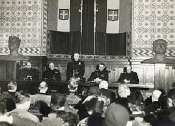 ST-ARCHIVIO ARGO PERIODO FASCISMO LOMBARDIA E MILANO NELLA FOTO L'INAUGURAZIONE DELLA SEZIONE DI MILANO DE'ISTITUTO DI STUDI ROMANIALLA PRESENZA DEL DUCA DI BERGAMO S.E. ON.PIETRO DE FRANISCI AVVENUTA AL CASTELLO SFORZESCO FOTO ARGO-PROV ARCH CONTROLUCE-AG ALDO LIVERANI SAS