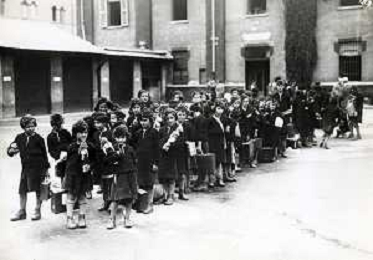 ST-ARCHIVIO ARGO PERIODO FASCISMO LOMBARDIA E MILANO NELLA FOTO RIIAPERUTA DELLE SCUOLE A MILANO GLI ALUNNI ASCOLTANO IL PRESIDE FOTO ARGO-PROV ARCH CONTROLUCE-AG ALDO LIVERANI SAS
