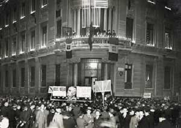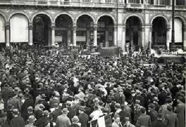 ST-ARCHIVIO ARGO PERIODO FASCISMO LOMBARDIA E MILANO NELLA FOTO IL POPOLO MILANESE ASCOLTA LE PAROLE DEL DUCE BENITO MUSSOLINI CHE A ROMA PARLA AGLI ITALIANI FOTO ARGO-PROV ARCH CONTROLUCE-AG ALDO LIVERANI SAS