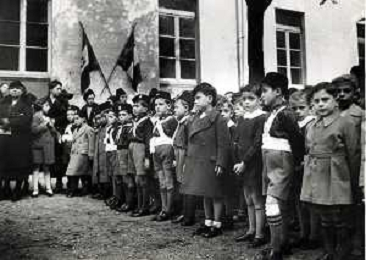 ST-ARCHIVIO ARGO PERIODO FASCISMO LOMBARDIA E MILANO NELLA FOTO IL GRUPPO DEI BAMBINI DELL'ARTIGIANATO DI RITORNO DALLE COLONIE FOTO ARGO-PROV ARCH CONTROLUCE-AG ALDO LIVERANI SAS