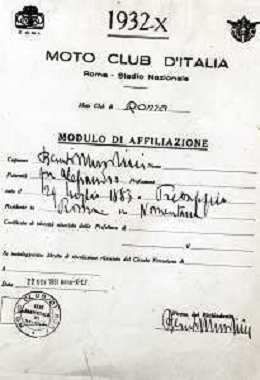 ST-ARCHIVIO ARGO PERIODO FASCISMO LOMBARDIA E MILANO NELLA FOTO CERTIFICATO DI APPARTENENZA AL MOTO CLUB DI BENITO MUSSOLINI FOTO ARGO-PROV ARCH CONTROLUCE-AG ALDO LIVERANI SAS
