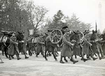 ST-ARCHIVIO ARGO PERIODO FASCISMO LOMBARDIA E MILANO NELLA FOTO 08-04-1939 L'ARRIVO A MILANO DELLA MILIZIA UNIVERSITARIA DOPO CIRCA UN MESE DI CAMPO SOPRA ERBA FOTO ARGO-PROV ARCH CONTROLUCE-AG ALDO LIVERANI SAS