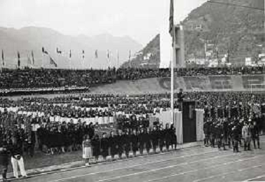 ST-ARCHIVIO ARGO PERIODO FASCISMO LOMBARDIA E MILANO NELLA FOTO CELEBRAZIONI DEGLI AGONALI DEL GUF ALL'ESTERO- STADIO SINIGAGLIA DI COMO ALLA PRESENZA DI S.E PARINI FOTO ARGO-PROV ARCH CONTROLUCE-AG ALDO LIVERANI SAS