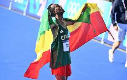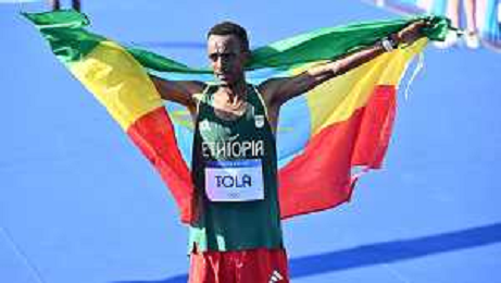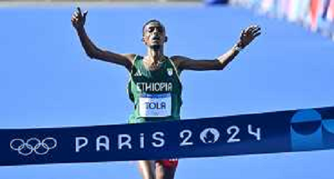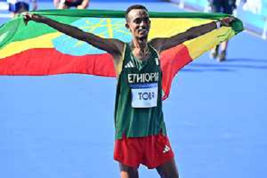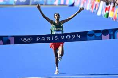 Olimpiadi Parigi 2024 - Atletica nella foto Tamirat Tola (ETH) medaglia d'oro Parigi (FRA) 10-08-2024 Invalides Atletica Leggera Maratona maschile foto Roberto Garavaglia/Agenzia Aldo Liverani sas
