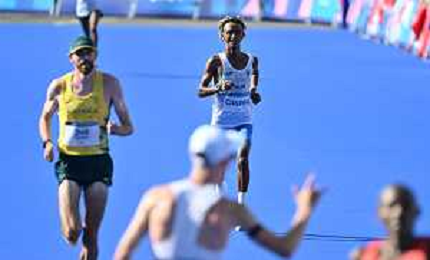 Olimpiadi Parigi 2024 - Atletica nella foto Eyob Faniel (ITA) termina la sua gara Parigi (FRA) 10-08-2024 Invalides Atletica Leggera Maratona maschile foto Roberto Garavaglia/Agenzia Aldo Liverani sas