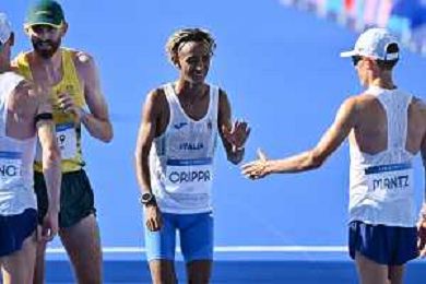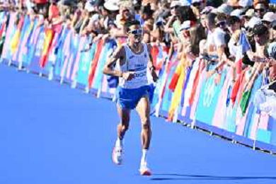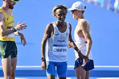 Olimpiadi Parigi 2024 - Atletica nella foto Yeman Crippa (ITA) termina la sua gara Parigi (FRA) 10-08-2024 Invalides Atletica Leggera Maratona maschile foto Roberto Garavaglia/Agenzia Aldo Liverani sas