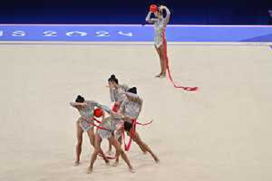 Olimpiadi Parigi 2024 - Ginnastica nella foto l'esercizio della Cina Parigi (FRA) 10-08-2024 Arena La Chapelle Ginnastica Ritmica Finale all-around a squadre foto Roberto Garavaglia/Agenzia Aldo Liverani sas