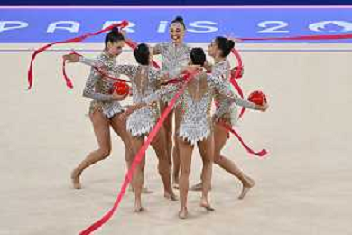 Olimpiadi Parigi 2024 - Ginnastica nella foto l'esercizio dell'Azerbaijan Parigi (FRA) 10-08-2024 Arena La Chapelle Ginnastica Ritmica Finale all-around a squadre foto Roberto Garavaglia/Agenzia Aldo Liverani sas