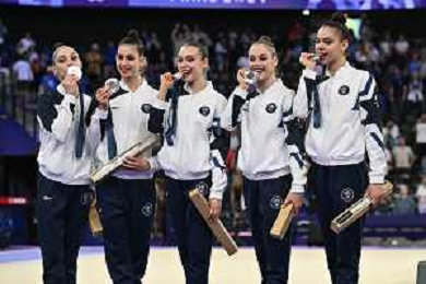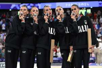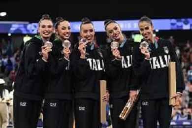 Olimpiadi Parigi 2024 - Ginnastica nella foto Italia, le Farfalle, medaglia di bronzo Parigi (FRA) 10-08-2024 Arena La Chapelle Ginnastica Ritmica Finale all-around a squadre foto Roberto Garavaglia/Agenzia Aldo Liverani sas