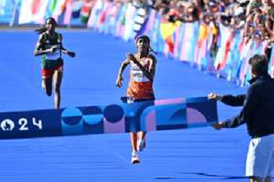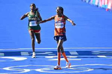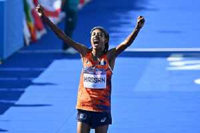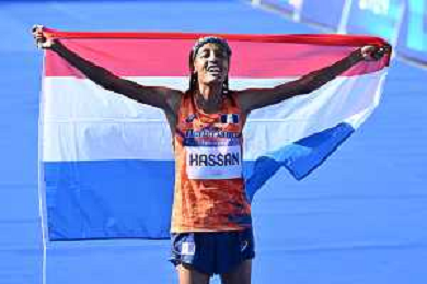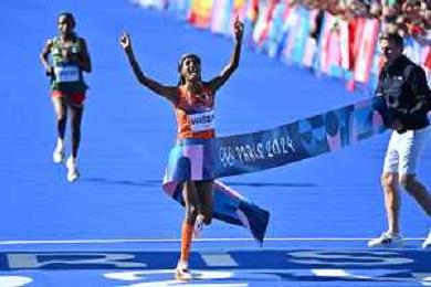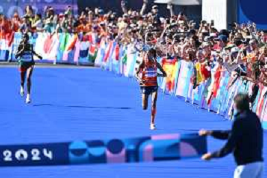 Olimpiadi Parigi 2024 - Atletica nella foto Sifan Hassan (NED) medaglia d'oro Parigi (FRA) 11-08-2024 Invalides Atletica Leggera Maratona femminile foto Roberto Garavaglia/Agenzia Aldo Liverani sas