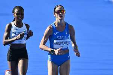 Olimpiadi Parigi 2024 - Atletica nella foto Sofiia Yaremchuk (ITA) termina la gara Parigi (FRA) 11-08-2024 Invalides Atletica Leggera Maratona femminile foto Roberto Garavaglia/Agenzia Aldo Liverani sas