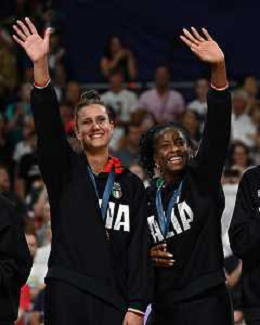 Olimpiadi Parigi 2024 - Pallavolo nella foto Caterina Bosetti (Italia) SX e Miriam Fatime Sylla (Italia) DX Parigi (FRA) 11-08-2024 Arena Parigi Sud Pallavolo femminile - Finale per la medaglia d'oro Stati Uniti vs Italia foto Roberto Garavaglia/Agenzia Aldo Liverani sas