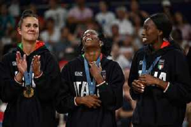 Olimpiadi Parigi 2024 - Pallavolo nella foto da SX Anna Danesi (Italia), Miriam Fatime Sylla (Italia) e Paola Egonu (Italia) Parigi (FRA) 11-08-2024 Arena Parigi Sud Pallavolo femminile - Finale per la medaglia d'oro Stati Uniti vs Italia foto Roberto Garavaglia/Agenzia Aldo Liverani sas