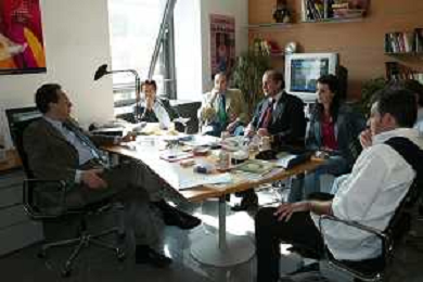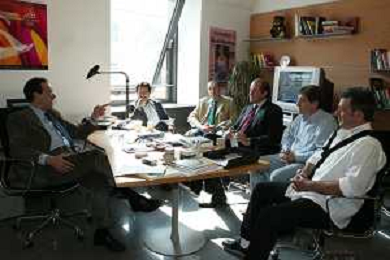 Milano 2 Maggio 2005 forum in redazione della gazzetta dello sport con Luciano Rossi presidente federazione tiro a volo e Andrea Benelli medaglia d'oro olimpiaca Atene 2004 NELLA FOTO ANTONIO DI ROSA DIRETTORE DELLA GAZZETTA DELLO SPORT foto Andry / Ag. Aldo Liverani