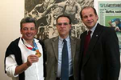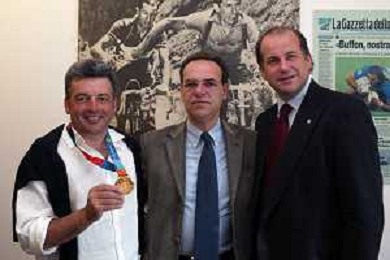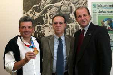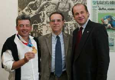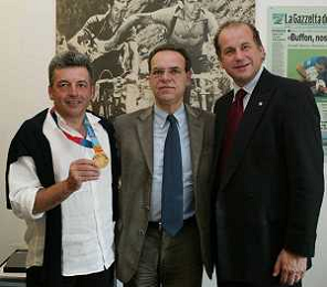 Milano 2 Maggio 2005 forum in redazione della gazzetta dello sport con Luciano Rossi presidente federazione tiro a volo e Andrea Benelli medaglia d'oro olimpiaca Atene 2004 foto Andry / Ag. Aldo Liverani