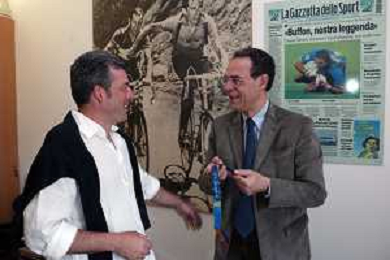 Milano 2 Maggio 2005 Servizio commissionato: forum in redazione della gazzetta dello sport con Luciano Rossi presidente federazione tiro a volo e Andrea Benelli medaglia d'oro olimpiaca Atene 2004 foto Andry / Ag. Aldo Liverani