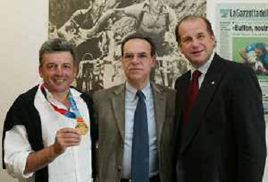 Milano 2 Maggio 2005 forum in redazione della gazzetta dello sport con Luciano Rossi presidente federazione tiro a volo e Andrea Benelli medaglia d'oro olimpiaca Atene 2004 NELLA FOTO ANTONIO DI ROSA DIRETTORE DELLA GAZZETTA DELLO SPORT CON ANDREA BENELLI E LUCIANO ROSSI PRESIDENTE DELLA FEDERAZIONE TIRO A VOLO foto Andry / Ag. Aldo Liverani