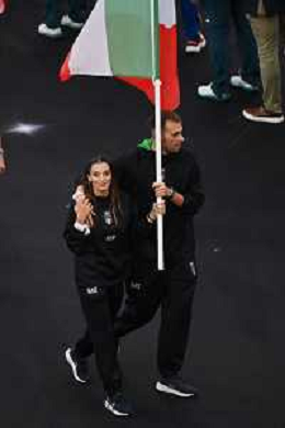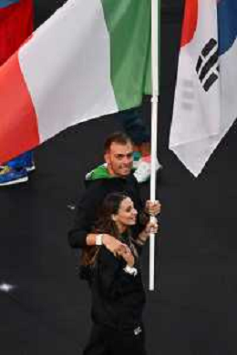 Olimpiadi Parigi 2024 - Cerimonia chiusura nella foto Gregorio Paltrinieri e Rossella Fiamingo portabandiera per l'Italia Parigi (FRA) 11-08-2024 Stade de France La cerimonia di chiusura delle Olimpiadi di Parigi 2024 foto Roberto Garavaglia/Agenzia Aldo Liverani sas