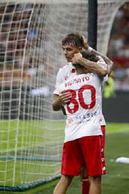 Samuele Vignato of AC Monza during AC Milan vs AC Monza , 2° edition of "Trofeo Berlusconi", frendly match pre-season, at Giuseppe Meazza - San Siro stadium of Milano (MI), Italy, on August 13, 2024. (Photo by Davide Casentini)/ AGENZIA ALDO LIVERANI SAS