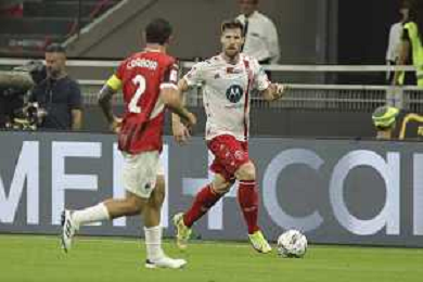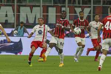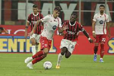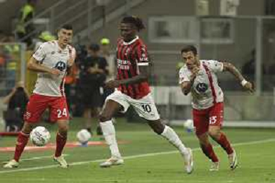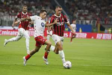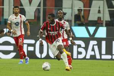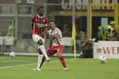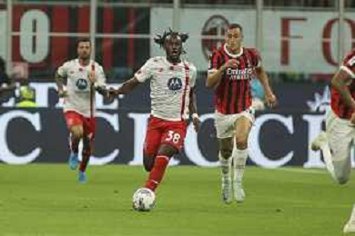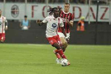 Warren Bondo of AC Monza play the ball during AC Milan vs AC Monza , 2° edition of "Trofeo Berlusconi", frendly match pre-season, at Giuseppe Meazza - San Siro stadium of Milano (MI), Italy, on August 13, 2024. (Photo by Davide Casentini)/ AGENZIA ALDO LIVERANI SAS