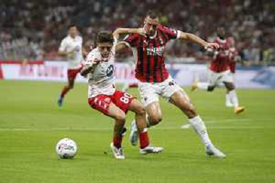 Armando Izzo of AC Monza during AC Milan vs AC Monza , 2° edition of "Trofeo Berlusconi", frendly match pre-season, at Giuseppe Meazza - San Siro stadium of Milano (MI), Italy, on August 13, 2024. (Photo by Davide Casentini)/ AGENZIA ALDO LIVERANI SAS