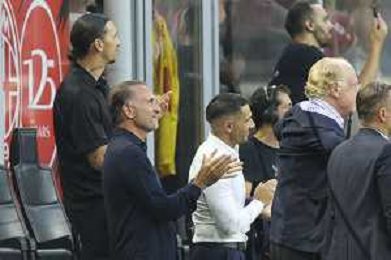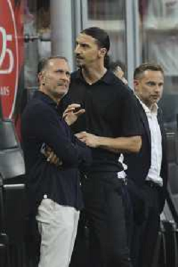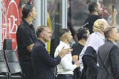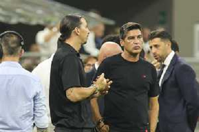 Zlatan Ibrahimovic Advisor of AC Milan speaks to Paulo Fonseca Head Coach of AC Milan during AC Milan vs AC Monza , 2° edition of "Trofeo Berlusconi", frendly match pre-season, at Giuseppe Meazza - San Siro stadium of Milano (MI), Italy, on August 13, 2024. (Photo by Davide Casentini)/ AGENZIA ALDO LIVERANI SAS