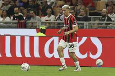Yunus Musah of AC Milan play the ball during AC Milan vs AC Monza , 2° edition of "Trofeo Berlusconi", frendly match pre-season, at Giuseppe Meazza - San Siro stadium of Milano (MI), Italy, on August 13, 2024. (Photo by Davide Casentini)/ AGENZIA ALDO LIVERANI SAS