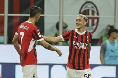 Esultanza dopogol saelemaekers -AC Milan vs AC Monza Secondo 'Trofeo Silvio Berlusconi' - San Siro Milano 13.08.2024 ©PAOLO GIAMPIETRI/ AGENZIA ALDO LIVERANI SAS