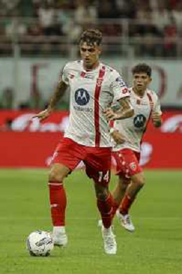 Pedro Pereira of AC Monza play the ball during AC Milan vs AC Monza , 2° edition of "Trofeo Berlusconi", frendly match pre-season, at Giuseppe Meazza - San Siro stadium of Milano (MI), Italy, on August 13, 2024. (Photo by Davide Casentini)/ AGENZIA ALDO LIVERANI SAS