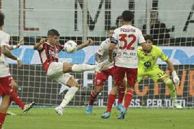 Daniel Maldini of AC Monza scores a goal during AC Milan vs AC Monza , 2° edition of "Trofeo Berlusconi", frendly match pre-season, at Giuseppe Meazza - San Siro stadium of Milano (MI), Italy, on August 13, 2024. (Photo by Davide Casentini)/ AGENZIA ALDO LIVERANI SAS