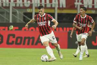 Luka Jovic of AC Milan play the ball during AC Milan vs AC Monza , 2° edition of "Trofeo Berlusconi", frendly match pre-season, at Giuseppe Meazza - San Siro stadium of Milano (MI), Italy, on August 13, 2024. (Photo by Davide Casentini)/ AGENZIA ALDO LIVERANI SAS