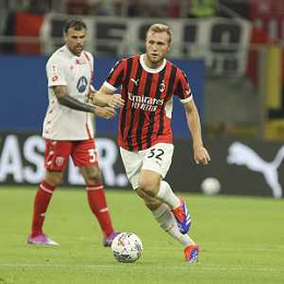 Kevin Zeroli of AC Milan play the ball during AC Milan vs AC Monza , 2° edition of "Trofeo Berlusconi", frendly match pre-season, at Giuseppe Meazza - San Siro stadium of Milano (MI), Italy, on August 13, 2024. (Photo by Davide Casentini)/ AGENZIA ALDO LIVERANI SAS