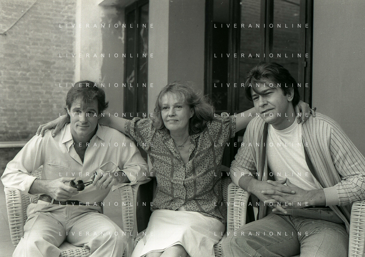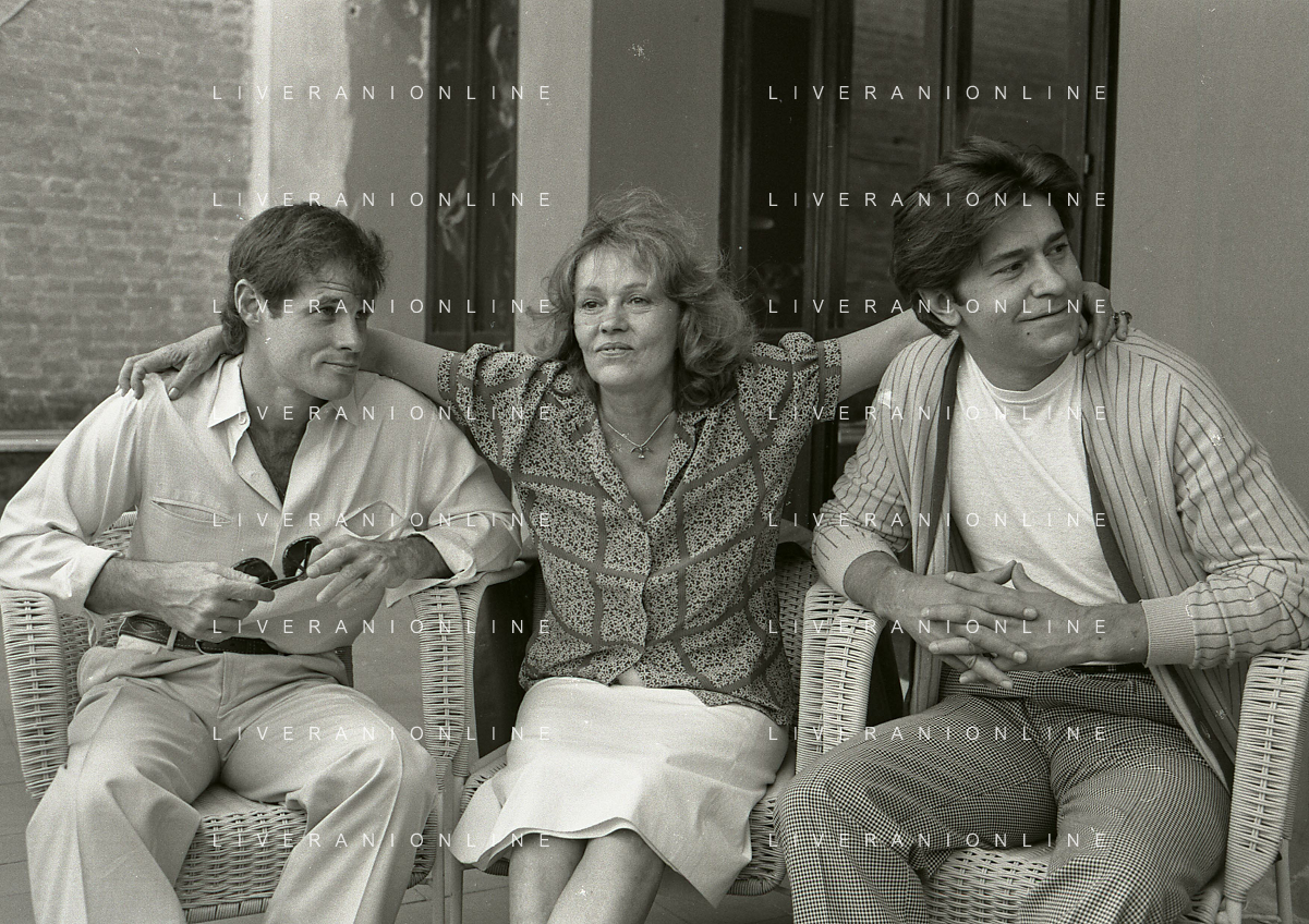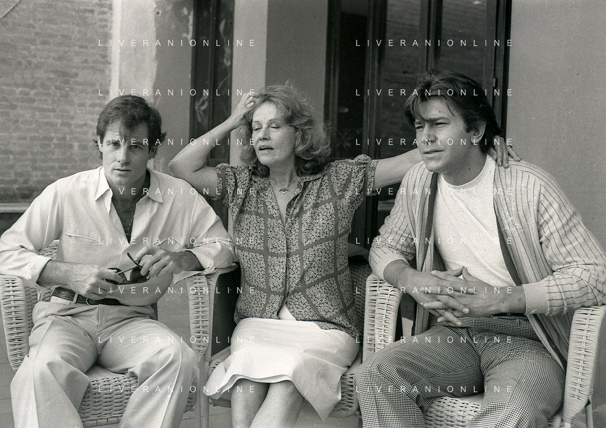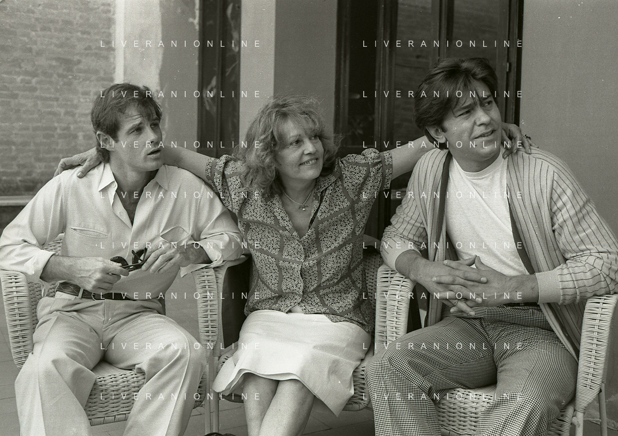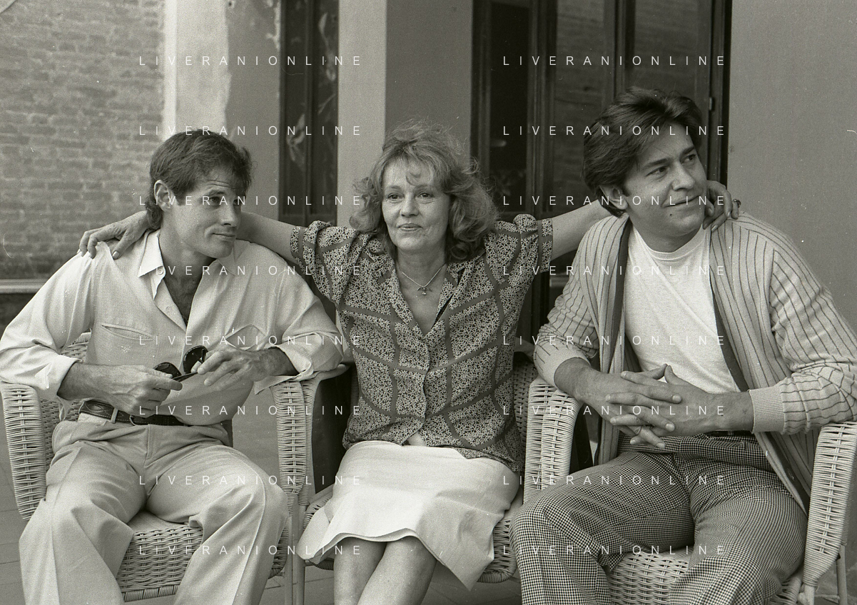 DIAP-VENEZIA- FESTIVAL INTERNAZIONALE DEL CINEMA NELLA FOTO JEANNE MOREAU CON HANNO POSCHL E BRAD DAVIS A VENEZIA NELL'ANNO 1982 FOTO FRANCO CAVASSI- AG ALDO LIVERANI SAS