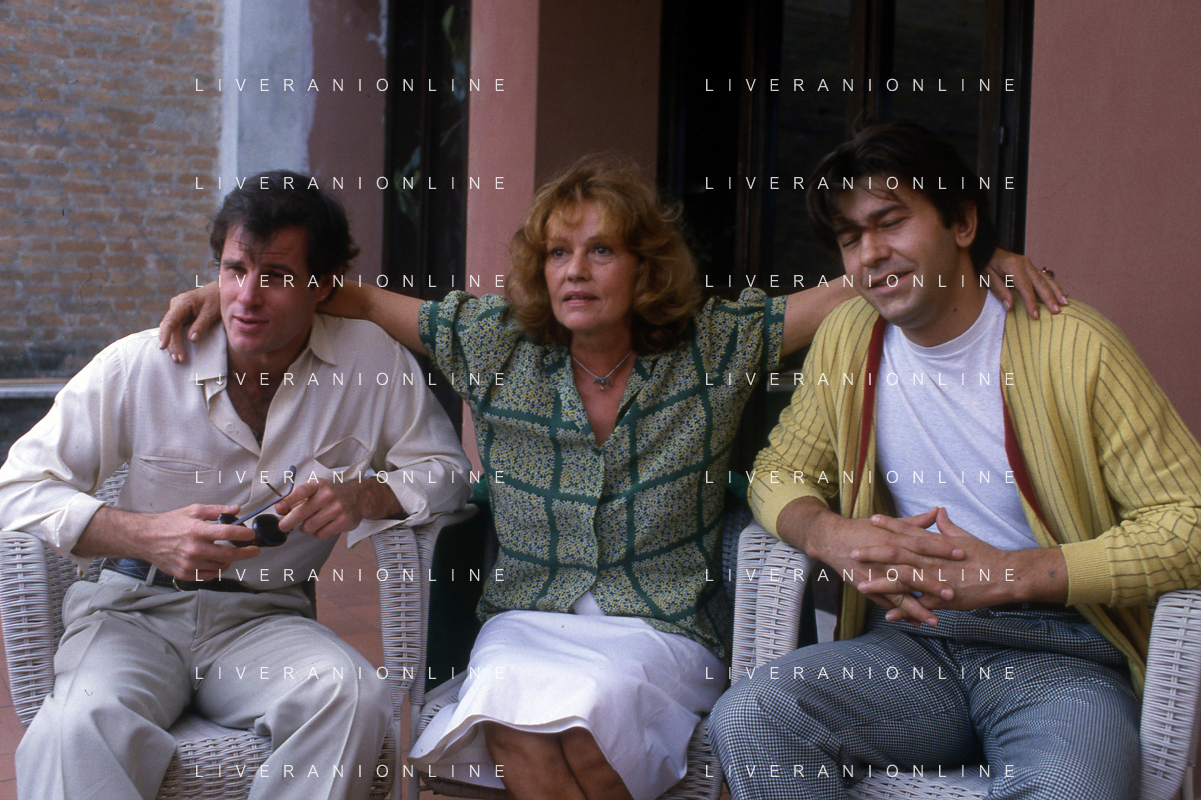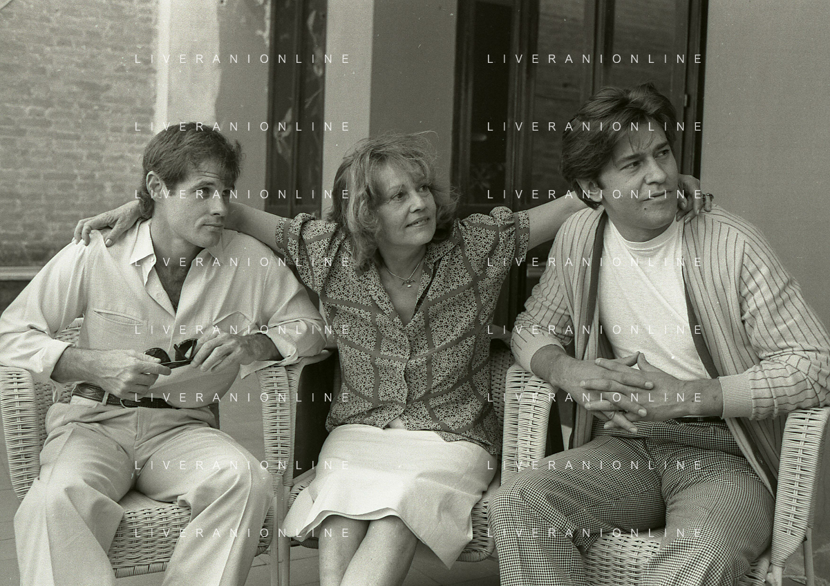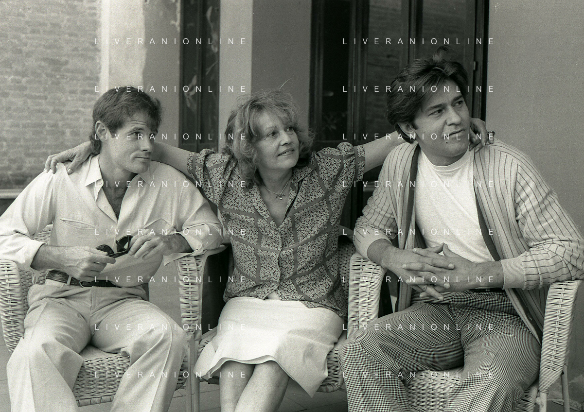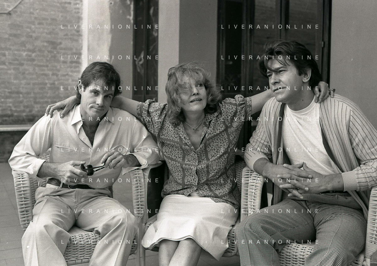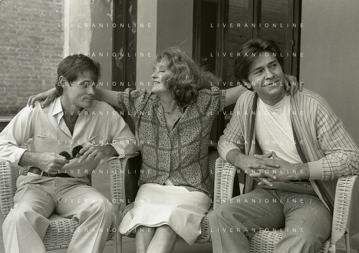 DIAP-VENEZIA- FESTIVAL INTERNAZIONALE DEL CINEMA NELLA FOTO JEANNE MOREAU CON HANNO POSCHL E BRAD DAVIS A VENEZIA NELL'ANNO 1982 FOTO FRANCO CAVASSI- AG ALDO LIVERANI SAS