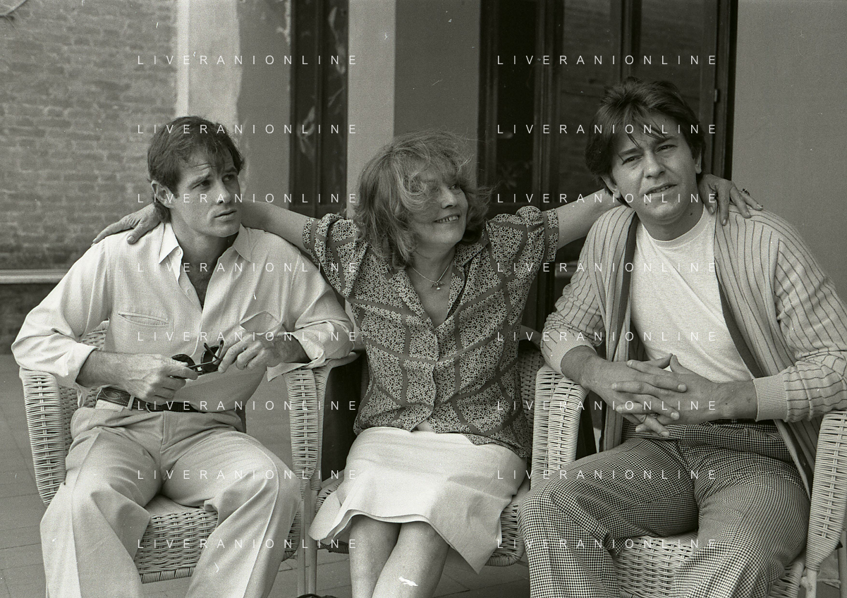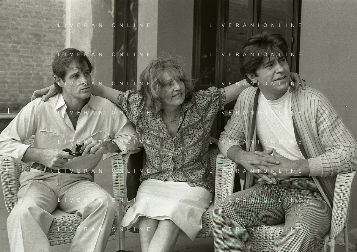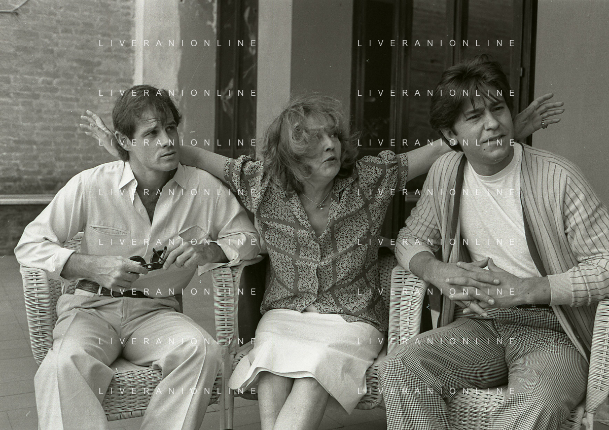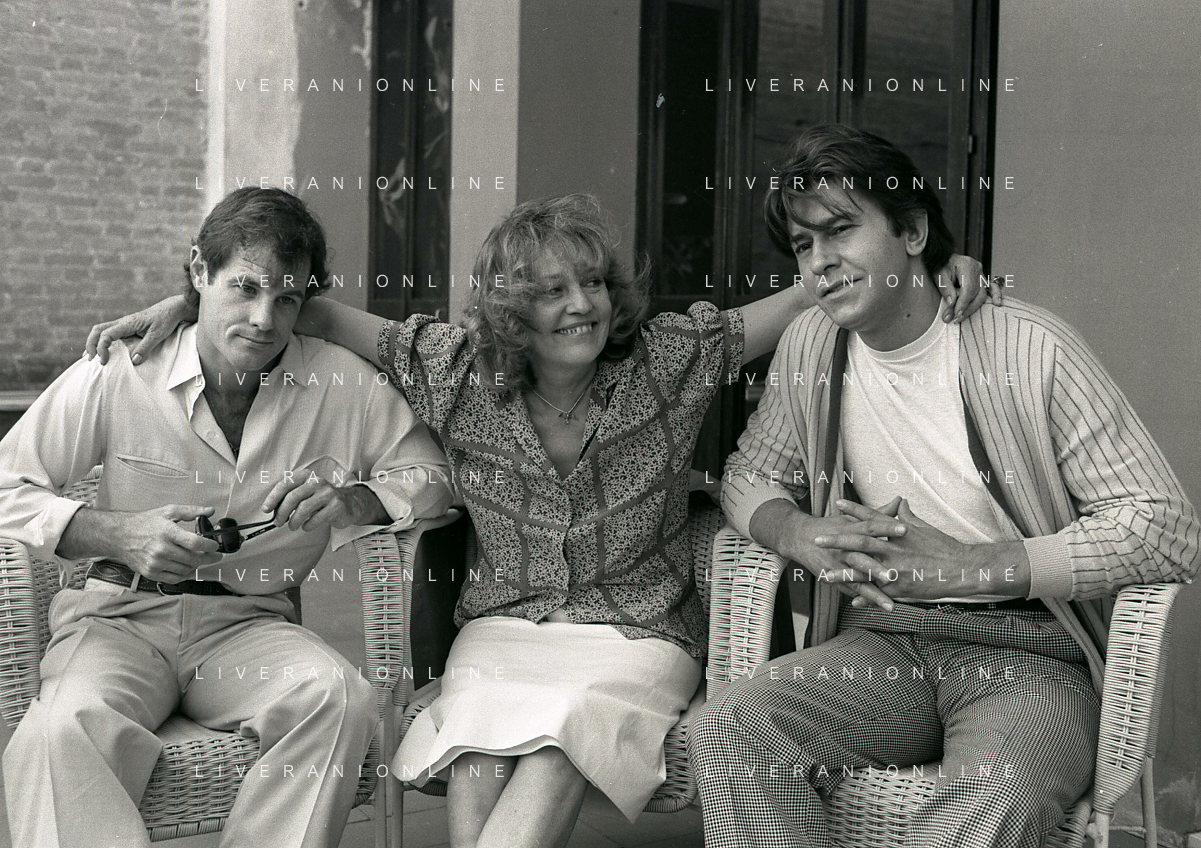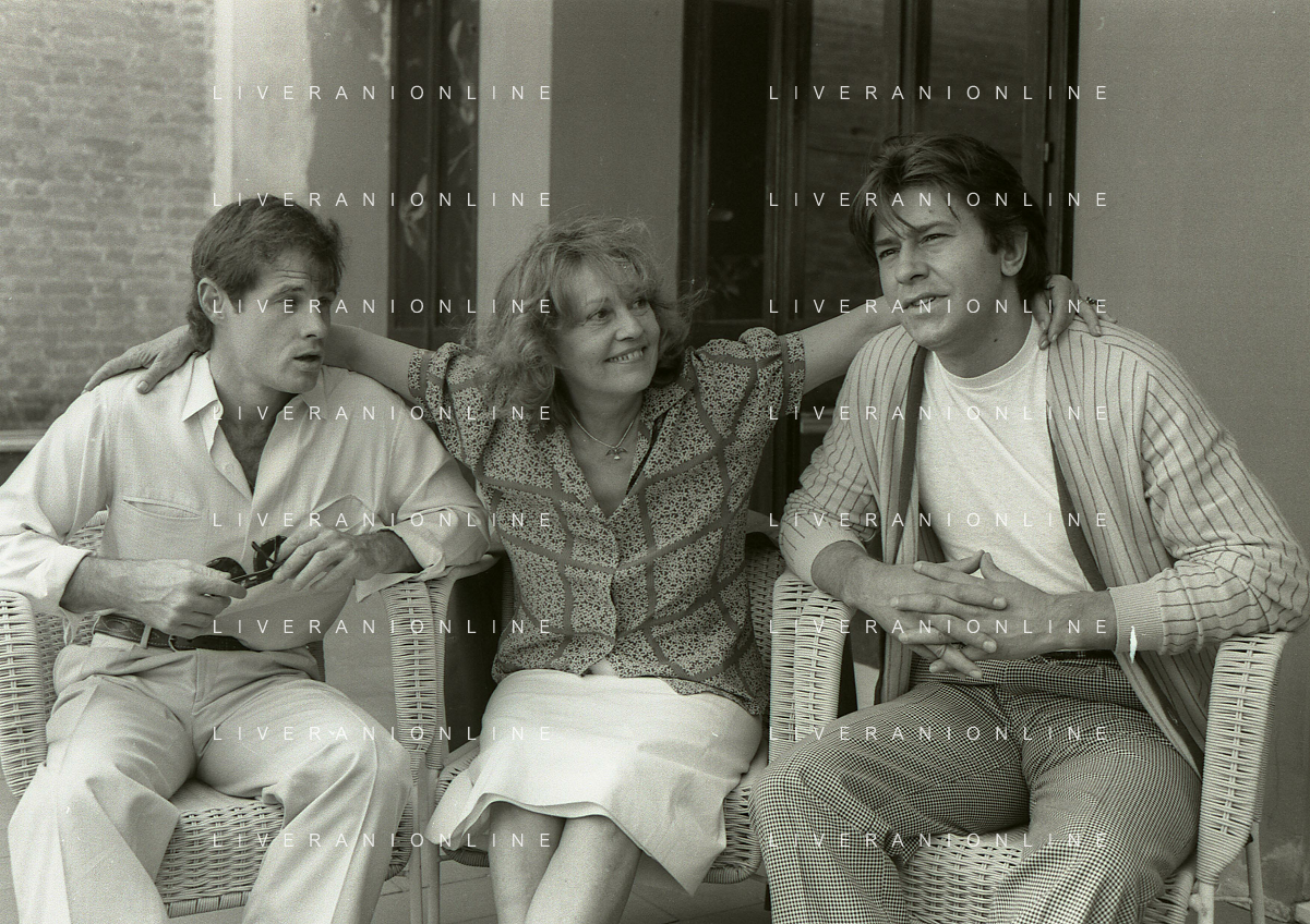 DIAP-VENEZIA- FESTIVAL INTERNAZIONALE DEL CINEMA NELLA FOTO JEANNE MOREAU CON HANNO POSCHL E BRAD DAVIS A VENEZIA NELL'ANNO 1982 FOTO FRANCO CAVASSI- AG ALDO LIVERANI SAS