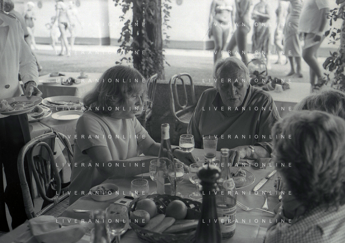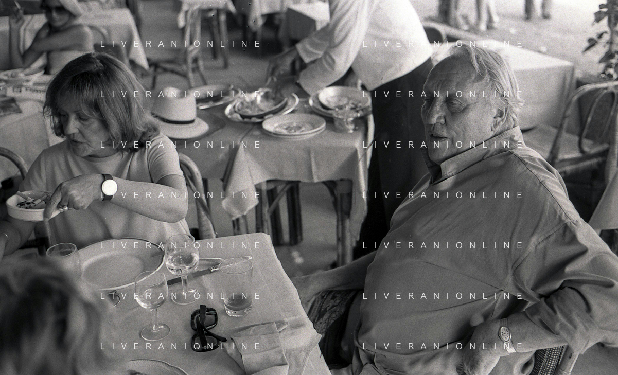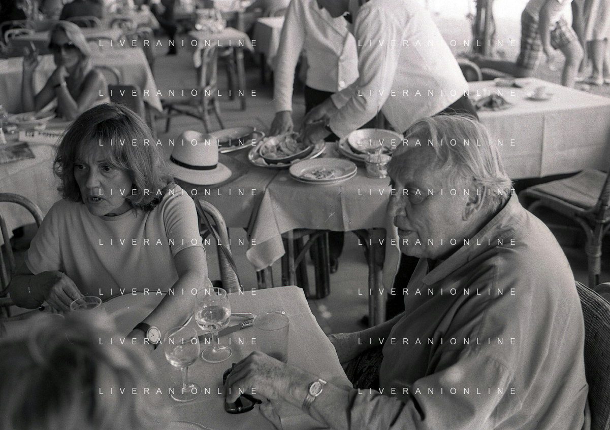 NEG-RETROSPETTIVA JEANNE MOREAU ATTRICE NELLA FOTO JEANNE MOREAU CON JOSEPH LOSEY NELL'ANNO 1982 AL FESTIVAL INTERNAZIONALE DEL CINEMA DI VENEZIA AG ALDO LIVERANI SAS