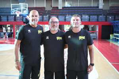 IMOLA 16 08 2024 VIRTUS IMOLA BASKET SERIE B1 PRIMO ALLENAMENTO NELLA FOTO DA SINISTRA SECONDO ALLENATORE AKI ZARIFI,PRIMO ALLENATORE GIAN LUIGI GALETTI E TERZO ALLENATORE ANDREA ZOTTI ©SANNA/AGENZIA ALDO LIVERANI SAS