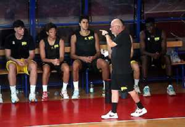 IMOLA 16 08 2024 VIRTUS IMOLA BASKET SERIE B1 PRIMO ALLENAMENTO NELLA FOTO ALLENATORE GIAN LUIGI GALETTI CON I GIOCATORI PRIMA DI ALLENAMENTO ©SANNA/AGENZIA ALDO LIVERANI SAS
