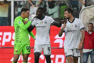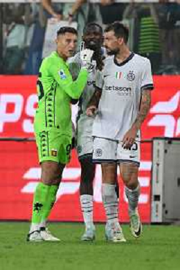 Genoa vs Inter nella foto tensione tra Pierluigi Gollini (Genoa) e Francesco Acerbi (Inter) a fine gara Genova 17-08-2024 Stadio Luigi Ferraris - Marassi Campionato Serie A Enilive - 1a giornata foto Roberto Garavaglia/Agenzia Aldo Liverani sas