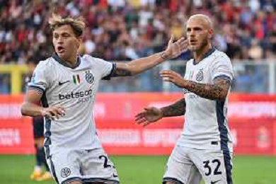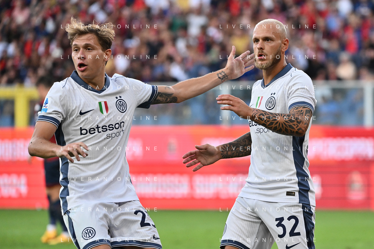Genoa vs Inter nella foto Nicolo' Barella (Inter) SX e Federico Dimarco (Inter) DX Genova 17-08-2024 Stadio Luigi Ferraris - Marassi Campionato Serie A Enilive - 1a giornata foto Roberto Garavaglia/Agenzia Aldo Liverani sas