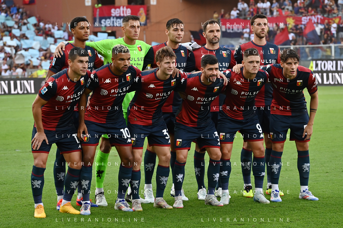 Genoa vs Inter nella foto formazione Genoa, in piedi da SX Koni De Winter, Pierluigi Gollini, Alessandro Vogliacco, Milan Badelj e Mattia Bani; in basso da SX Ruslan Malinovskyj, Junior Messias, Morten Frendrup, Aaron Martin Caricol, Vitinha Vitor Carvalho Oliveira e Alessandro Zanoli Genova 17-08-2024 Stadio Luigi Ferraris - Marassi Campionato Serie A Enilive - 1a giornata foto Roberto Garavaglia/Agenzia Aldo Liverani sas
